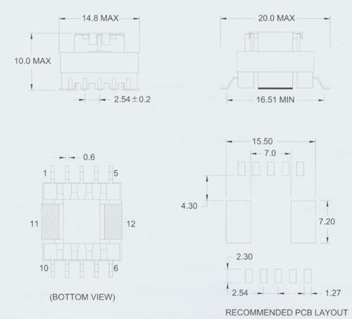 Packages and Dimensions of Switch Mode Power Transformers